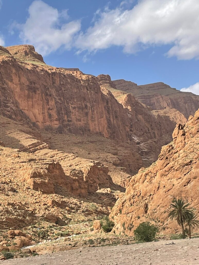 After breakfast, we travel towards the desert. Our first highlight is the Todra Gorge, a massive canyon with towering limestone cliffs that are a favorite for climbers and nature lovers. You will have time to walk along the river and admire the sheer scale of the rock faces. From here, we make our way to the village of Merzouga, the gateway to the Erg Chebbi dunes. This is where your desert experience truly begins. You will swap your vehicle for a camel, trekking across the golden sands to a desert camp just in time to watch the sunset paint the dunes in shades of orange and pink. Enjoy a traditional Berber drum circle under the stars In a luxury camp